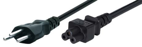 Netzanschlusskabel Schweiz, Stecker an 3pol Buchse C5, schwarz, 1,8 m - 3polig, z.B. für Notebook- Netzstecker für die Schweiz- 0,75 mm², bis 2,5 A / 250 V- schwarz, 1,8 m