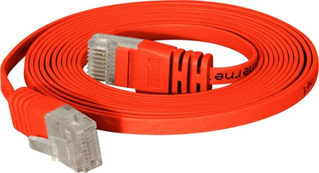 High Quality Flachband Patchkabel Cat. 6, U/UTP, rot, 0,5 m Ideal für die Verlegung unter Fußleisten, Teppichböden, Laminat und anderen Bodenbelägen - RJ45-Stecker an RJ45-Stecker- Twisted Pair, ungeschirmt, 4 x 2 x AWG 32- wesentlich flacher als normale Patchkabel: nur 1,5 mm dick!- ideal zum versteckten Verlegen - besonders kurze Knickschutztül