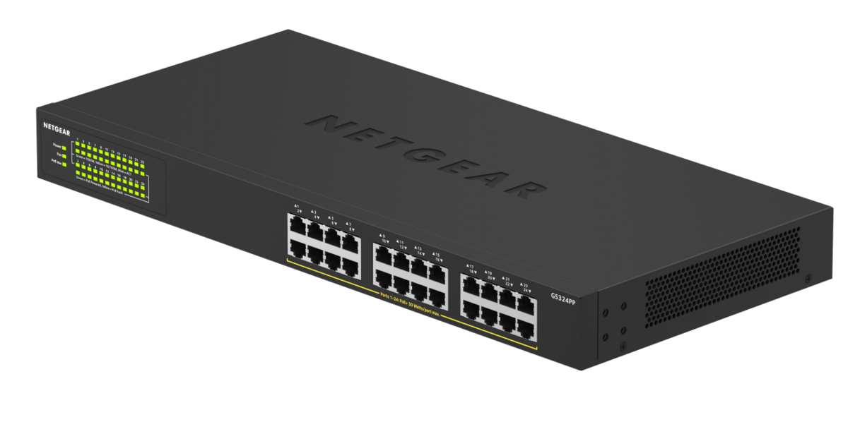 GS324PP 24-Port Gigabit Ethernet Unmanaged Hochleistungs PoE+ Switch, 380 W PoE-Budget, Plug-and-Play, Desktop, Rackmount, PoE Power Auto-Balance und Verteilung zwischen den Ports