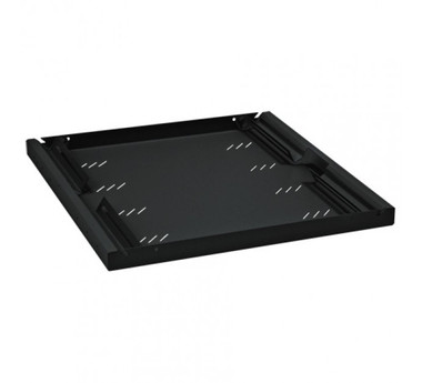 19" Fachboden, geeignet für alle 19" Schränke ab 900 mm Tiefe, Tiefe: 750 mm, Belastbarkeit: 80 kg, Befestigung an 4 Holmen, gelocht, Befestigungswinkel tiefenverstellbar, 19" / 1 HE, Befestigungshalterungen integriert, leicht herausbrechbar, schwarz