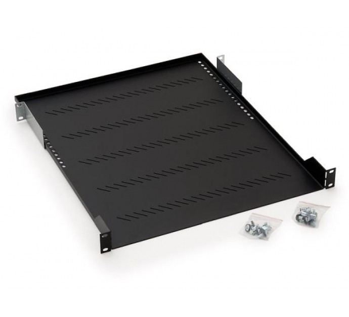 19" Fachboden, geeignet für alle 19" Wandgehäuse und Schränke, Tiefe: 250 mm, Belastbarkeit: 20 kg, Befestigung an 2 Holmen, gelocht zur besseren Luftzirkulation, Befestigungswinkel 19" / 1 HE, mit Befestigungsmaterial, hellgrau