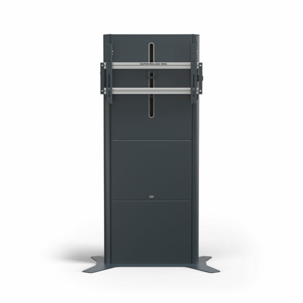 Standfuß mit motorisierter Höhenverstellung für Displays bis 150kg / VESA max. 600x400. Mit Verstaumöglichkeit für Geräte und Kabel.