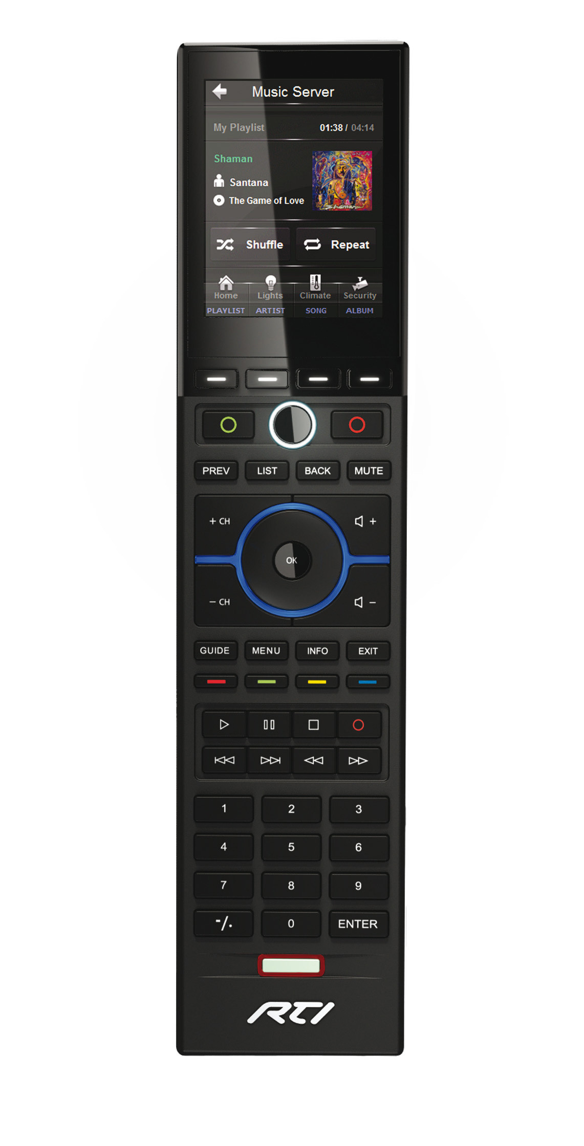 Premium 2.8" ZigBee Farb-Touch-Bediengerät, integrierter Griffsensor (für Hintergrundbeleuchtung), Kommunikation per Infrarot, RF (433 MHz), ZigBee (2,4 GHz) und WLAN 802.11b/g (2.4GHz) mit Verschlüsselung: WPA2-PSK möglich). Frei gestaltbares Farb-Touch-Display, 48 frei programmierbare Tasten. 128 MB Speicher. Reichweite Infrarot: max. 9 m, Reichweite Zigbee: max. 30 m. integrierter Bewegungssensor zur Steuerung per Handbewegung, inkl. Ladestation, Micro-USB-Kabel zur Programmierung notwendig (nicht im Lieferumfang enthalten)