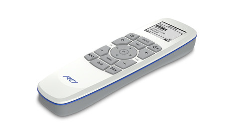 Wassergeschützte Fernbedienung (IP66) mit ePaper Display, wetterfest, 433MHz oder 2.4 GHz Zigbee Technologie, 16 programmierbare Tasten, kabellos programmierbar, induktives Aufladen des Akkus. Inkl. Ladestation und wetterfestem Holster.