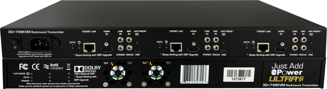 3G+ 3 input Rackmount Transmitter 4K - USB 2.0-Field Upgradeable Dolby Chip