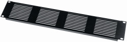 1 HE Frontplatte mit Belüftungsschlitzen (20% offene Fläche), VTP Serie (schwarz gebürstet und eloxiert), abgekantet zur Aussteifung, VPE 1 Stk