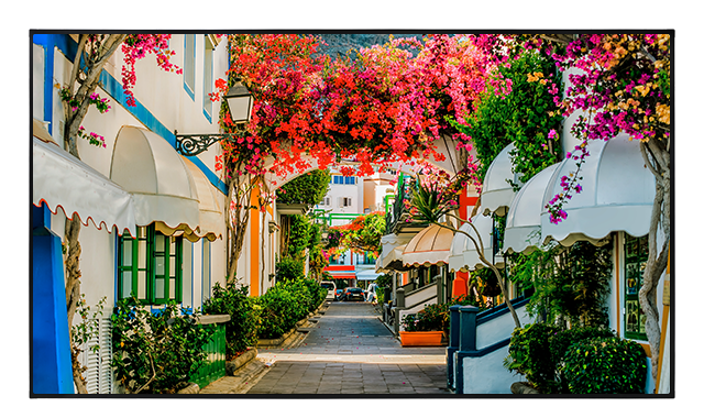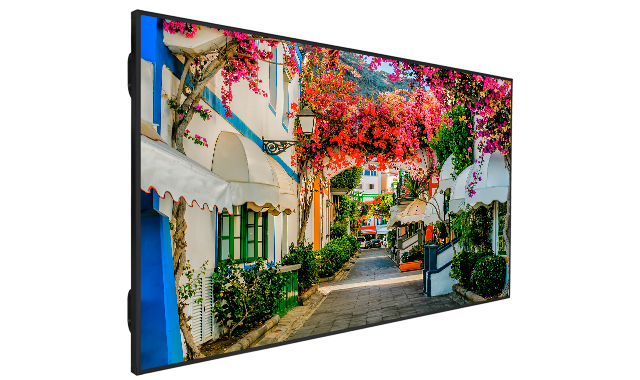 4K Display, 98", 3840x2160 (UHD), 500 cd/m², 24/7 Betrieb, Schnittstellen: HDMI 2.0 / VGA / USB / RS232 /RJ45 / RJ12 / IR / HP / Audio / Lautsprecher