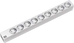 19" - socket outlets ALU 1U 9-way RAL7035; length 438,5mm; not rewireable 2m HO5VV-F 3G1,50mm² black with Schuko-plug; incl. 2 fixing angles; each in polybag with header