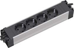 STEP socket outlet; PVC - body; 4 german type sockets black 35°; Length: 262,5mm; Power Input: GST18 plug; Power Output: GST18 coupling; packed in polybag;