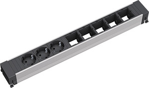 CONFERENCE power strip ALU L: 444mm 3xSchuko black; 5xframe; GST18 power in- and output;