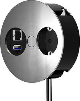TWIST 1S 2P socket outlet unit: metallic cover in matt chrome; 1xGerman type socket outlet with increased touch protection, colour black; 2xKeystone holder with: 1xCAT6 socket outlet socket outlet, front and rear RJ45, shielded; 1xUSB 3.0A/A module, front and rear socket outlet USB A; including Wieland device cable length 2 m, colour black, with GST18 German type; power input: 0.2 m with GST18i3 plug; individually in cardboard box;
