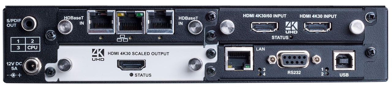 Modules: HDBaseT, DVI, HDMI, 3G-SDI, VGA, YPbPr, YC, CV, H.264, Player