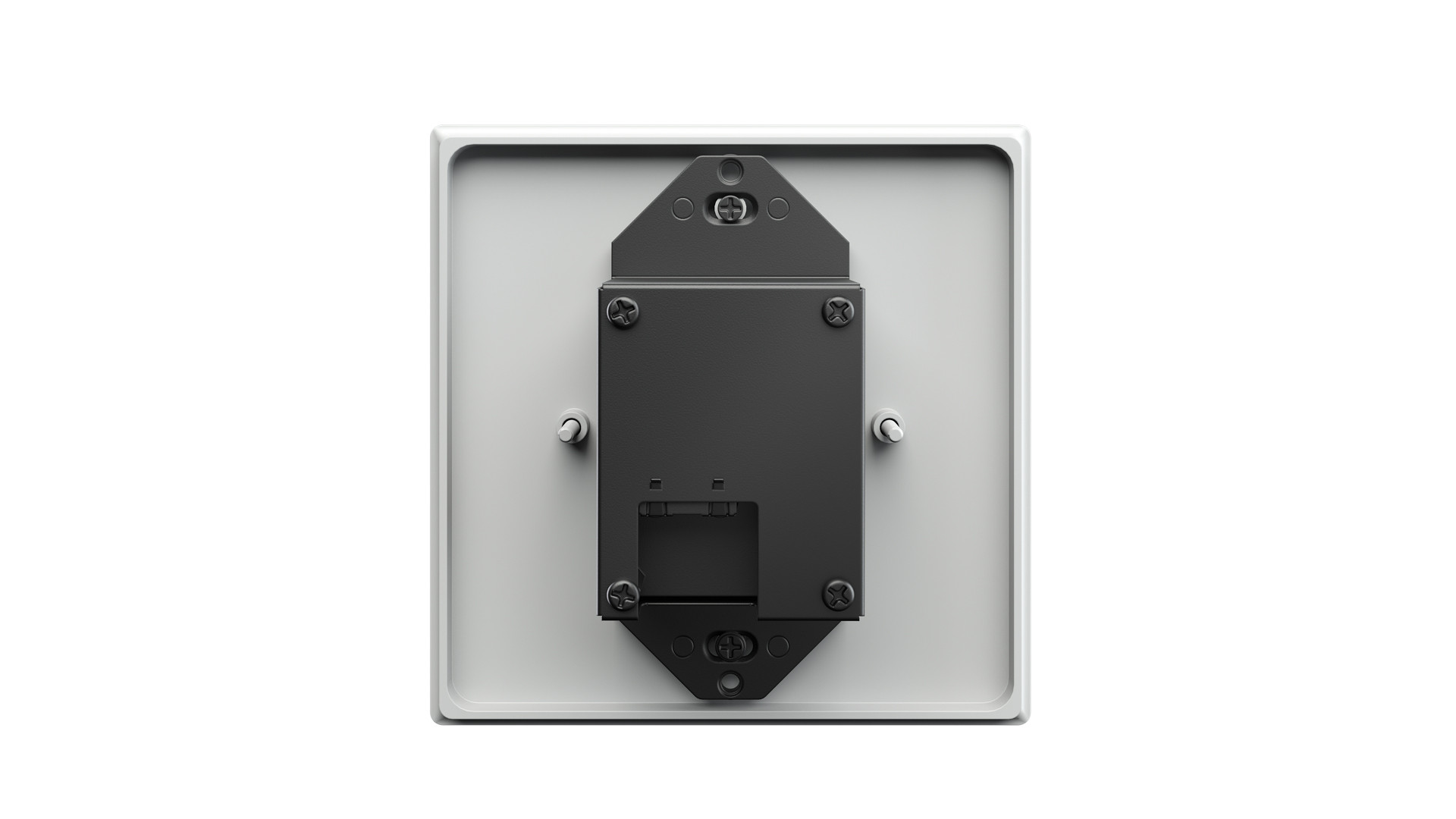 Bluetooth 5.0 to Dante module, PoE-powered with single Cat5/6. Mounts into single-gang EU/UK wall-box, includes white coated aluminium faceplate.