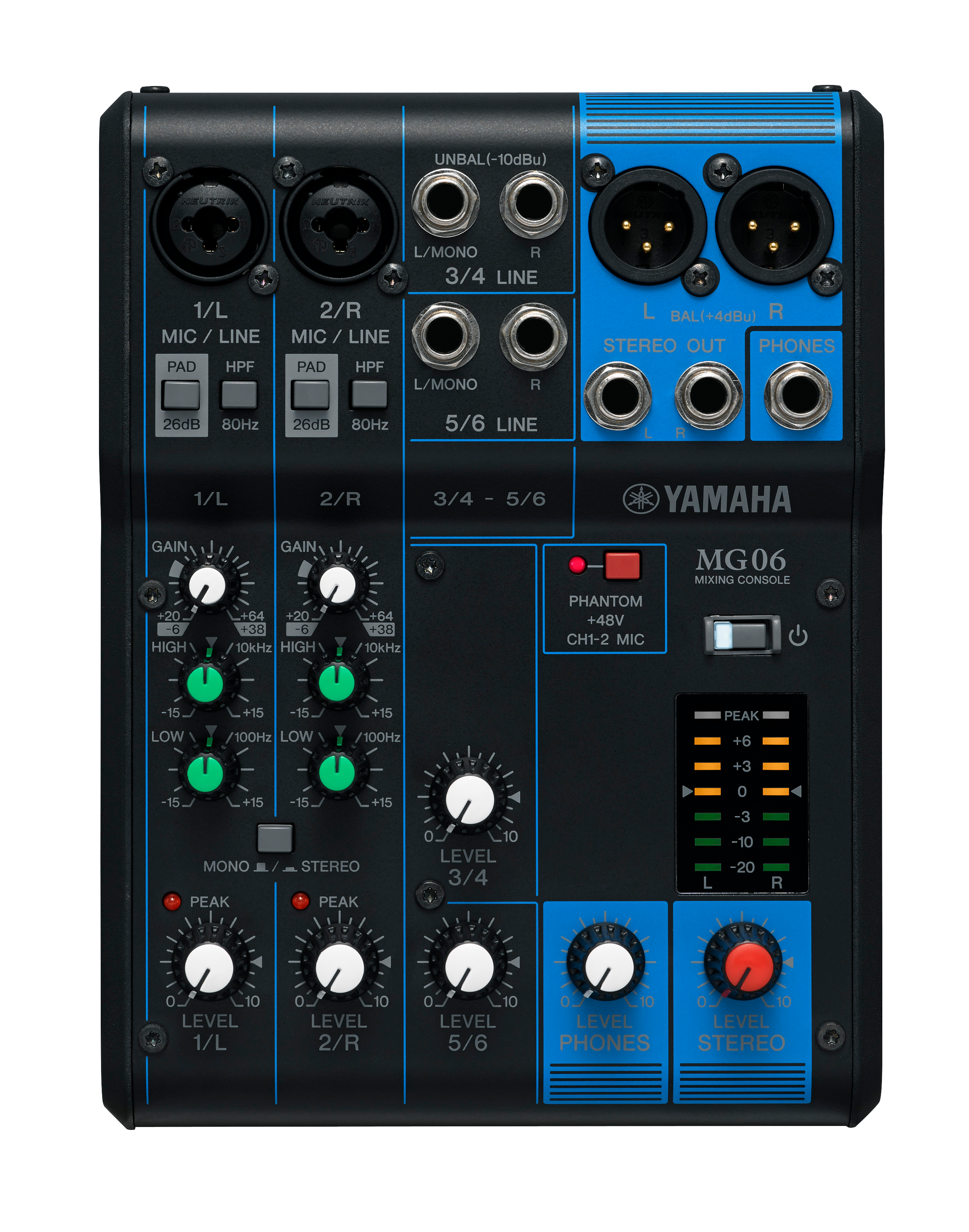 6 Kanäle, D-Pre MicPreamps, 48V Phantomspeisung, 2-Band CH EQ & HPF, 26dB Pad, XLR-Ausgänge