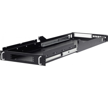 Stable construction with full extension for any components weighing up to 45 kg, requires 3 U, of which 2 U for the extendable construction and 1 U for the components to be installed, installation depth 750 mm, extension 650 mm, black