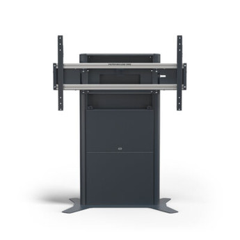 Foot stand for displays up to 150kg / VESA max. 1000x600. With storage possibility for equipment and cables. Finish: dark grey