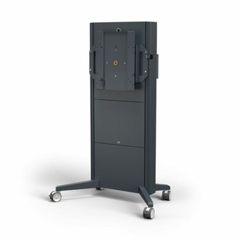Mobile trolley with motorised height adjustment and rotation function for displays up to 50kg / VESA max. 400x400. With storage possibility for equipment and cables.