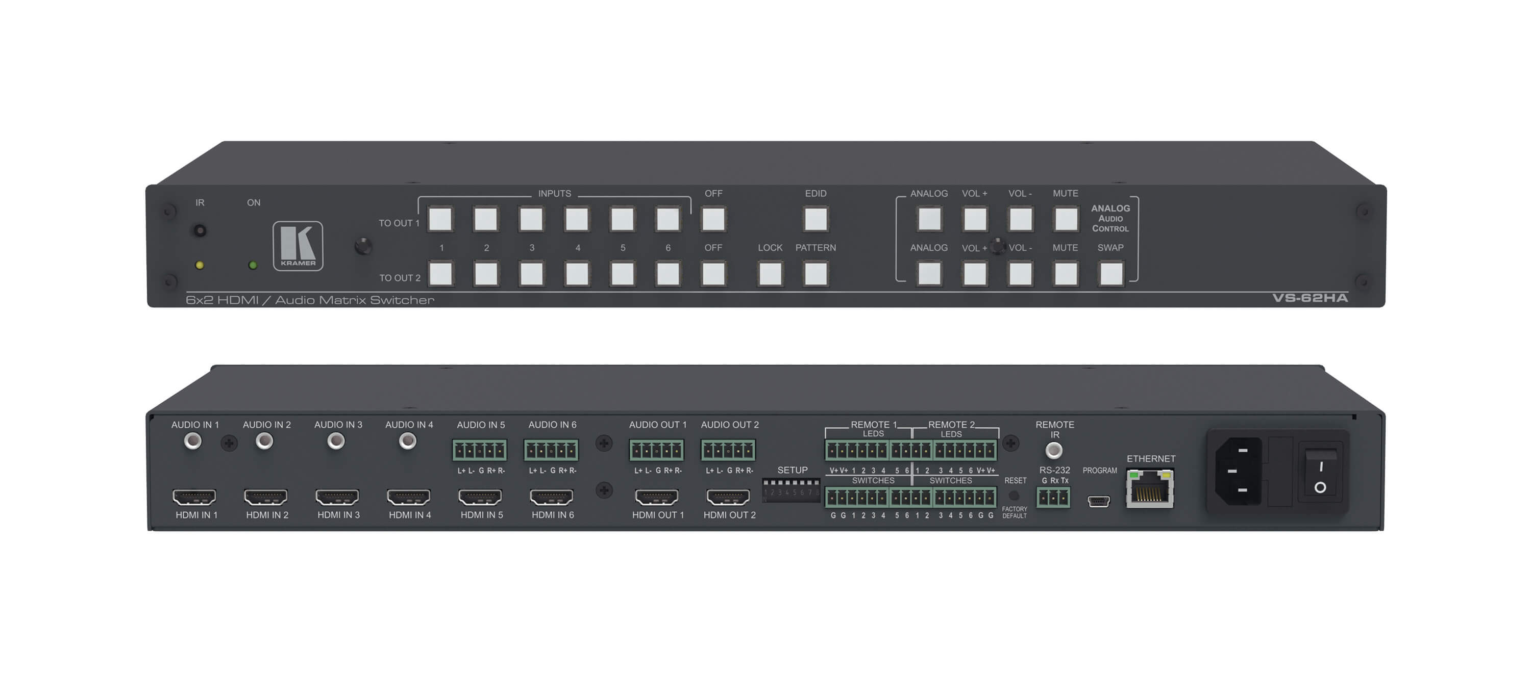 6x2 4K 60 HDMI/Audio Matrix Switch with Automatic & Step-In Switching