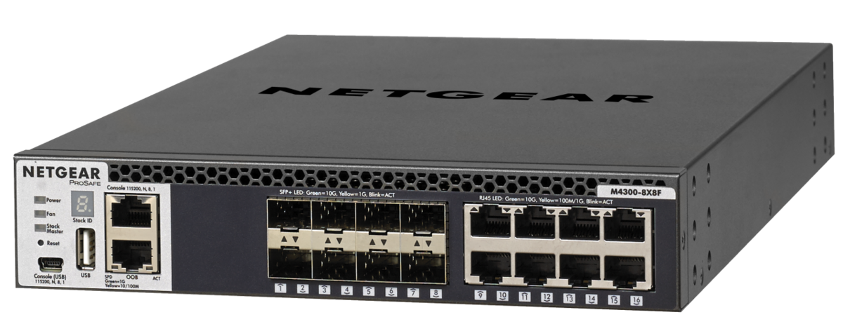XSM4316S M4300-8X8F Stackable mgd.switch with 16x10G including 8x10GBASE-T and 8xSFP+ Layer 3 (XSM4316S), SDN-ready Open Flow 1.3, low noise, half width